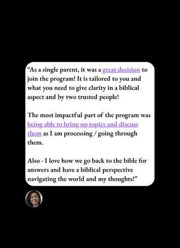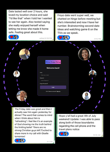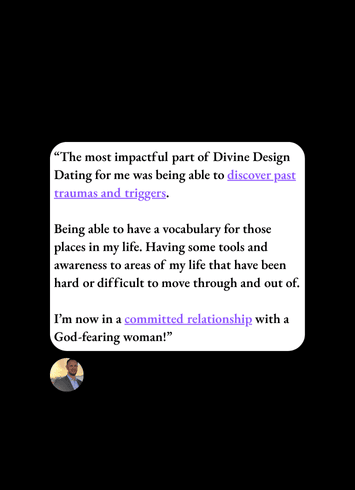 Divine Design Dating is the key to transforming your dating life through Biblical wisdom and practical strategies. Our 90-day coaching program addresses the real challenges Christian singles face - from finding quality partners who share your values to healing past relationship wounds to finding the future spouse you've always desired - and it's our personal commitment to help you create the changes needed to unlock God's design for your relationship future.